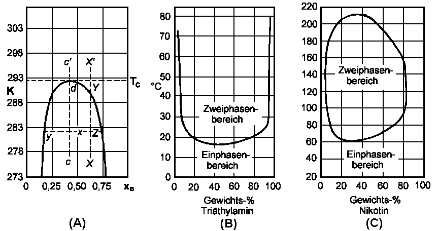 (a) n-Hexan/Nitrobenzol; (b) Triäthylamin/Wasser; (c) Nikotin/Wasser |
