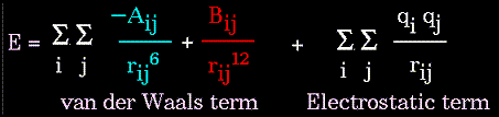 distances (1/r^12 dependency). The energy term that describes attraction/repulsion