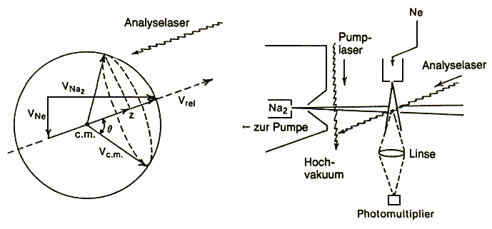 wo Pt(E't)dE't der Bruchteil der Produkte mit Translationsenergie zwischen E't und E't + dE't ist. Benutzt man nciht nur einen polarisierten Pumplaser, sondern auch einen polarisierten Anaylselaser, so kann man neben der Energieverteilung auch noch die relative Orientierung der Fragmente nach dem Stoß messen.